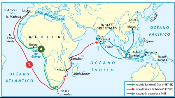 Más tarde, rodearon la costa de africa dirigiendose hacia el sur para obtener oro y esclavos
