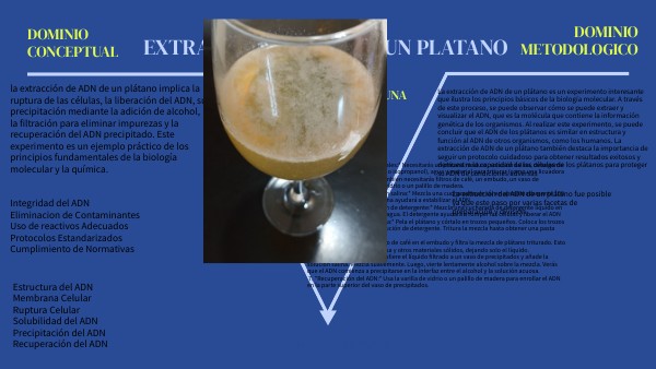 la extracción de ADN de un plátano implica la ruptura de las células, la liberación del ADN, su precipitación mediante la adición de alcohol, la filtración para eliminar impurezas y la recuperación del ADN precipitado. Este experimento es un ejemplo práctico de los principios fundamentales de la biología molecular y la química. Integridad del ADN Eliminacion de Contaminantes Uso de reactivos Adecuados Protocolos Estandarizados Cumplimiento de Normativas