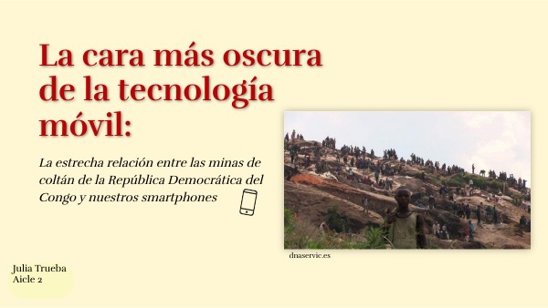 La enorme demanda del coltán, que se encuentra principalmente en el Congo, por parte de quienes lo consumimos en nuestro día a día, sin importarnos el precio que tiene su obtención para tantísimas personas.