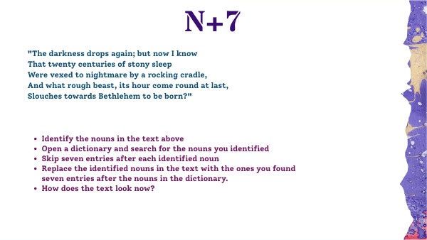 - Replace the identified nouns in the text with the ones you found seven entries after the nouns in the dictionary.
