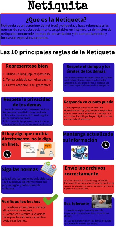 Netiqueta es un acrónimo de net (red) y etiqueta, y hace referencia a las normas de conducta socialmente aceptables en Internet. La definición de netiqueta comprende normas de presentación y de comportamiento y formas de expresión aceptadas.