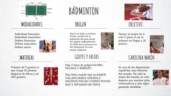 Nacío en India y se llamo Poona, nombre de la población del país donde fue jugado originalmente. En 1992 fue la primera vez del badminton en unos juegos olimpicos