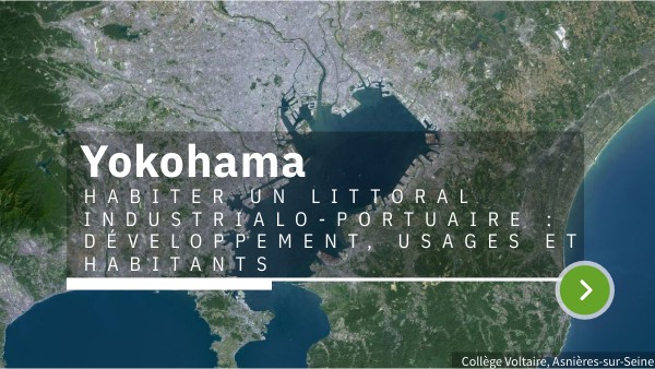 Vue de Kanagawa aujourd'hui, au centre, le port de Yokohama