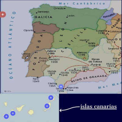 En el año 1402 inicia la conquista de las islas canarias. Comenzó con la toma de Lanzarote y fue seguida por la toma de Fuenteventura, La Gomera y El Hierro.