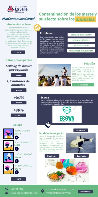 Frente de innovación tecnológica para el cuidado de los mares, enfocado en la producción de herramientas que poner a disposición de empresas mayormente contaminantes por sus actividades y así poder reducir al mínimo los efectos que tenga sobre nuestros océanos.