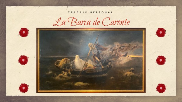 La obra está inspirada en la mitología griega, en concreto, trata del mito de Caronte, el barquero de los muertos, el cual se encarga de transportar las almas de los difuntos a través del río Aqueronte hacia el inframundo, pero esto solo a cambio de una moneda de oro como pago por el viaje, siendo el comunicador entre el limbo y el infierno. En esta época, predominaba el Realismo, el cual se ve claramente reflejado en la obra, ya que los cuadros del realismo se caracterizan por representar la realidad de manera objetiva y fiel. En este caso, no refleja la realidad cotidiana, pero refleja de forma realista la composicion, ya que en mi opinión Benlliure pretendía realñizar una critica a la socidad alertándola sobre las consecuencias de los actos que se toman.