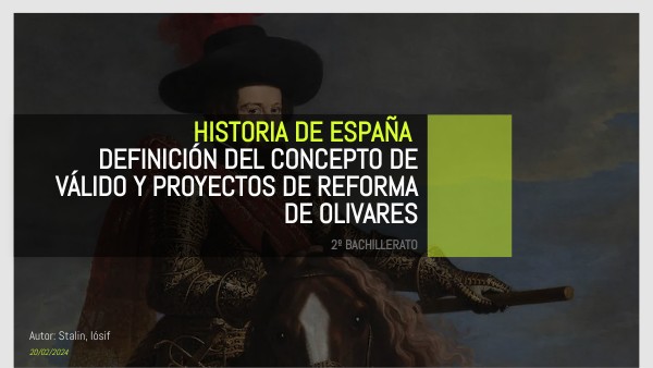 HISTORIA DE ESPAÑA Definición del concepto de válido y proyectos de reforma de Olivares