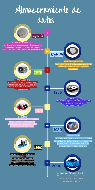 ALMACENAMIENTO EN PAPEL- Los datos se almacenaban en papel, dese manuscritos hasta impresiones. Esto incluia registros contables, transacciones comerciales y documentos gubernamentales