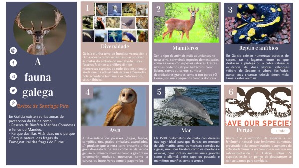 Galicia é unha terra de frondosa vexetación e clima oceánico con varias rías que protexen as costas do embate do mar aberto. Estes factores facilitan a proliferación de numerosas especies de todo tipo de animais; aínda que na actualidade estean ameazadas pola actividade humana e explotación dos seus hábitats..