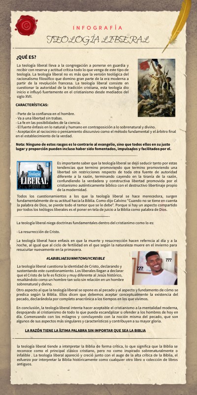 La teología liberal lleva a la congregación a ponerse en guardia y recibir con reserva y actitud crítica todo lo que venga de este tipo de teología. La teología liberal no es más que la versión teológica del racionalismo filosófico que domino gran parte de la era moderna a partir de la revolución francesa. La teología liberal consiste en cuestionar la autoridad de la tradición cristiana, esta teología dio inicio e influyó fuertemente en el cristianismo desde mediados del siglo XVII.
