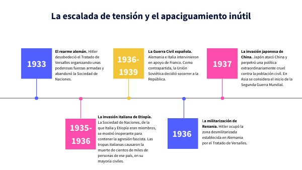 La militarización de Renania. Hitler ocupó la zona desmilitarizada establecida en Alemania por el Tratado de Versalles.