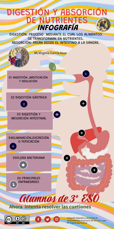 Infografía Digestión y absorción de nutrientestiene licencia CC BY-SA 4.0.© 2 por Mª Virginia García Aivar