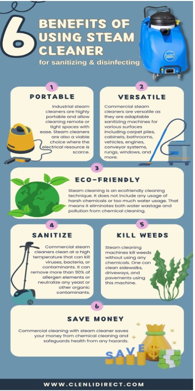 Commercial steam cleaners have various advantages that set this tool apart from chemical cleaning techniques. It improves the cleaning effectiveness, removes contaminants, and helps in eco-friendly cleaning, want to know more? Check this out now! https://bit.ly/4bKxnjh