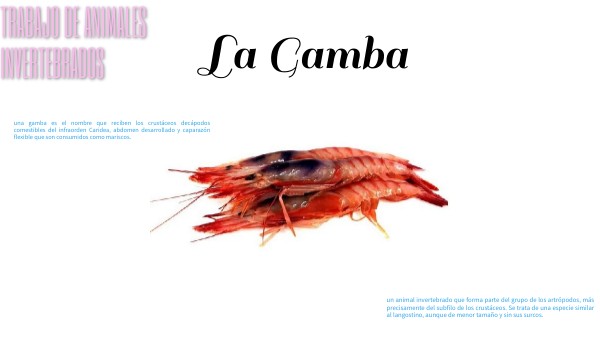 una gamba es el nombre que reciben los crustáceos decápodos comestibles del infraorden Caridea, abdomen desarrollado y caparazón flexible que son consumidos como mariscos.
