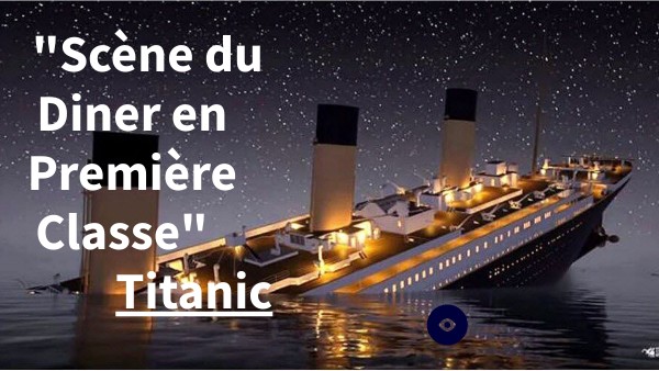 La scène du "Diner en Première Classe" est un extrait du film Titanic parut en 1998. Ce film est tiré d'une histoire vraie, le bateau RMS Titanic a fait naufrage le 15 avril 1912 après avoir percuté un iceberg. Mr. Dawson est invité à manger en première classe pour avoir sauvé la vie de Rose. Cette offre semble être un cadeau mais ce n'est en faite qu'un tour du fiancé de Rose pour se moquer de ce passager de troisième classe.