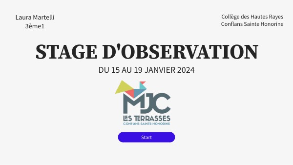 (La MJC n'étant pas ouverte le Lundi, je n'ai donc pu faire que seulement 4 jours de stage)