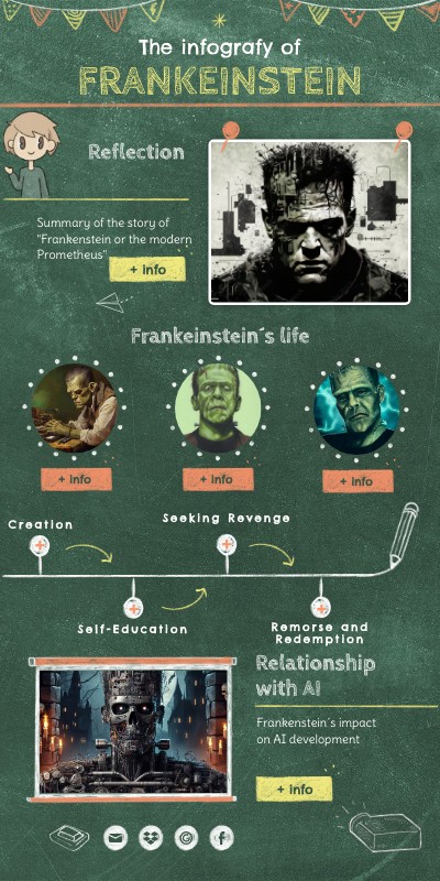 Ethical Responsibility: Just as Dr. Frankenstein bears responsibility for the actions of his creation, developers and researchers in AI have a responsibility to consider the ethical implications of their work. Fear of the Unknown: Similar to how society fears and rejects Dr. Frankenstein's creation due to its unfamiliarity and monstrous appearance, there can be fear and skepticism surrounding AI due to its complexity and potential to disrupt various aspects of society. Creation of Life/Intelligence: In both "Frankenstein" and the development of AI, there is the theme of creating something that mimics or surpasses human capabilities. Dr. Frankenstein creates the creature out of various body parts, while AI researchers aim to create intelligent systems that can perform tasks traditionally associated with human intelligence.