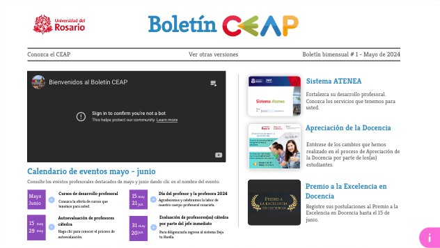 Al hacer clic en cada cuadro, podrá encontrar todas las versiones del boletín bimestral.