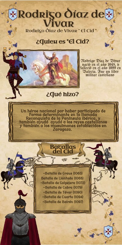 Rodrigo Diaz de Vivar nació en el año 1048, y falleció en el año 1099 en Valecia. Fue un líder militar castellano