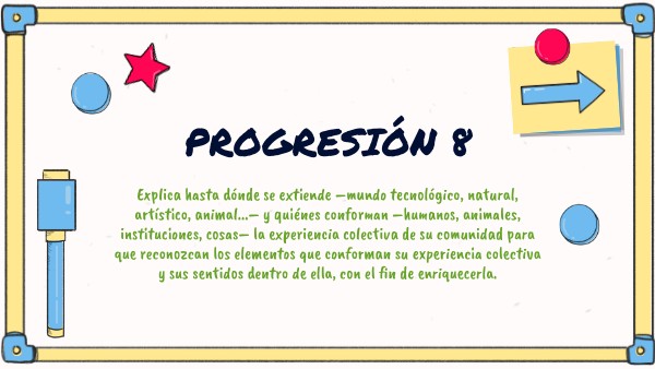 Explica hasta dónde se extiende –mundo tecnológico, natural, artístico, animal...– y quiénes conforman –humanos, animales, instituciones, cosas– la experiencia colectiva de su comunidad para que reconozcan los elementos que conforman su experiencia colectiva y sus sentidos dentro de ella, con el fin de enriquecerla.