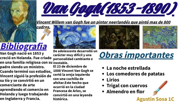 Vincent Willem van Gogh fue un pintor neerlandés que pintó mas de 800 cudros.