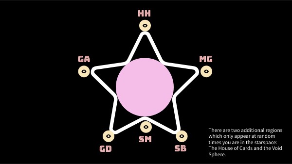 There are two additional regions which only appear at random times you are in the starspace: The House of Cards and the Void Sphere.