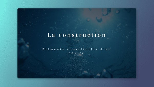 On entend par structure du navire, les éléments distinctifs suivants:Forme de la coque La carène est la partie immergée du navire. Lorsqu’on nettoie cette partie, on parle de carénage. La quille/keel : elle est la colonne vertébrale du navire, elle désigne la pièce de charpente principale. La quille servira de support aux autres pièces de construction. L’étrave : extrémité avant du navire, de par sa forme et l’angle qu’elle forme avec la quille, elle déterminera l’élancement du navire. Elle peut comporter un bulbe ou être inversée.