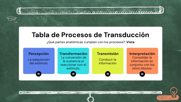Proceso de Transducción de los seis sentidos principales del cuerpo humano.