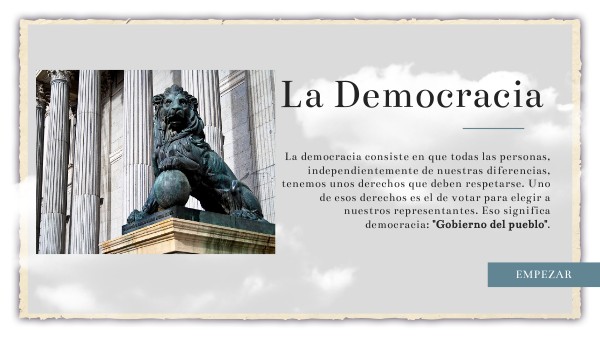 La democracia consiste en que todas las personas,independientemente de nuestras diferencias, tenemos unos derechos que deben respetarse. Uno de esos derechos es el de votar para elegir a nuestros representantes. Eso significa democracia: "Gobierno del pueblo".