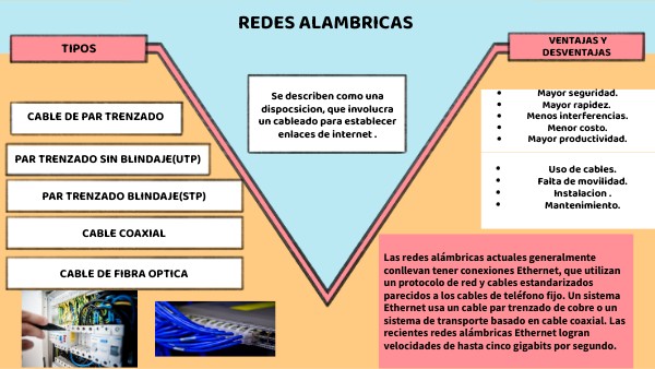Las redes alámbricas actuales generalmente conllevan tener conexiones Ethernet, que utilizan un protocolo de red y cables estandarizados parecidos a los cables de teléfono fijo. Un sistema Ethernet usa un cable par trenzado de cobre o un sistema de transporte basado en cable coaxial. Las recientes redes alámbricas Ethernet logran velocidades de hasta cinco gigabits por segundo.