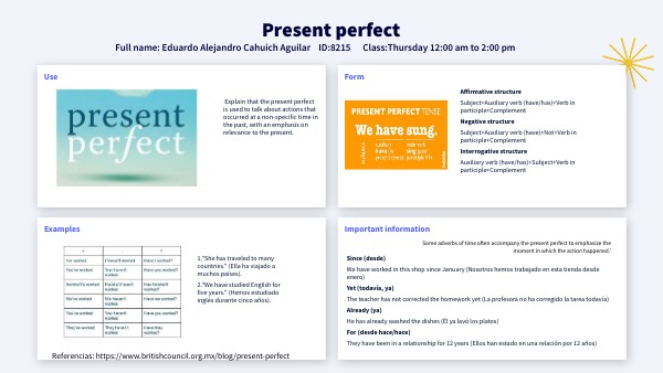 Referencias: https://www.britishcouncil.org.mx/blog/present-perfect