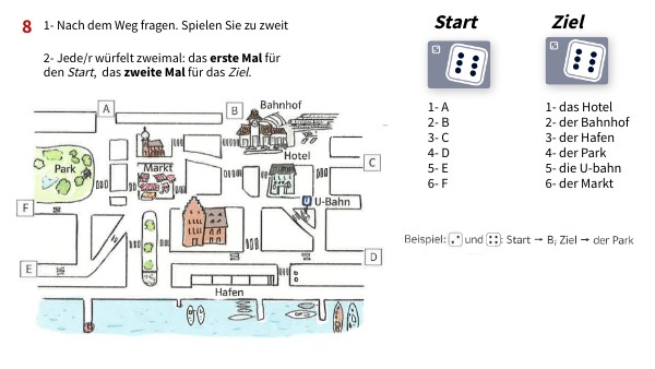 1- Nach dem Weg fragen. Spielen Sie zu zweit