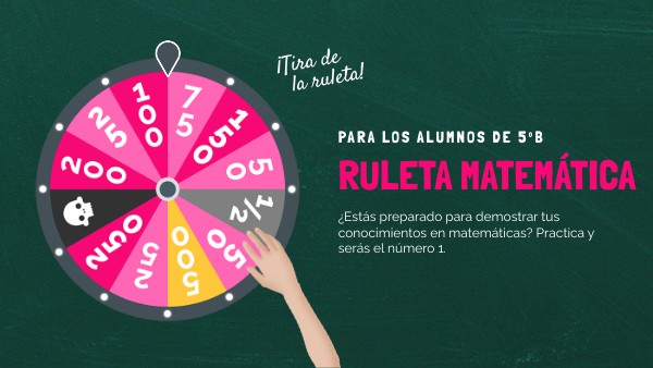 Una ruleta matemática en la que se evalúan tres preguntas sobre las operaciones de fracciones y tres preguntas sobre los números primos. Grupo al que va dedicado: 5º de Primaria