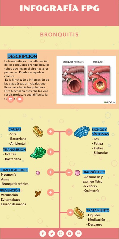 La bronquitis es una inflamación de los conductos bronquiales, los tubos que llevan el aire hacia los pulmones. Puede ser aguda o crónica Es la hinchazón e inflamación de las vías aéreas principales que llevan aire hacia los pulmones. Esta hinchazón estrecha las vías respiratorias, lo cual dificulta la respiración