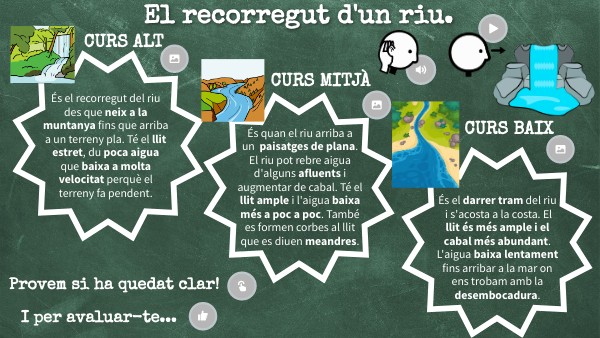 És quan el riu arriba a un paisatges de plana. El riu pot rebre aigua d'alguns afluents i augmentar de cabal. Té el llit ample i l'aigua baixa més a poc a poc. També es formen corbes al llit que es diuen meandres.
