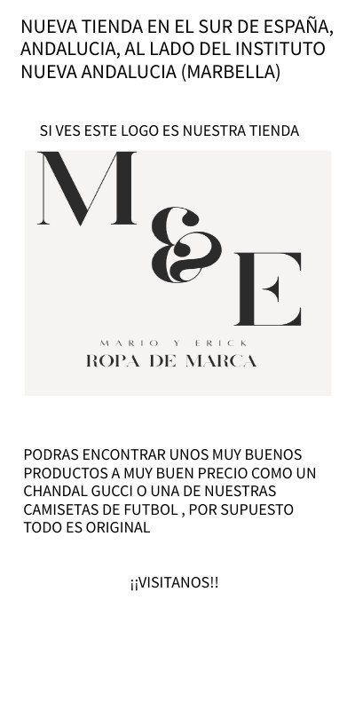 PODRAS ENCONTRAR UNOS MUY BUENOS PRODUCTOS A MUY BUEN PRECIO COMO UN CHANDAL GUCCI O UNA DE NUESTRAS CAMISETAS DE FUTBOL , POR SUPUESTO TODO ES ORIGINAL ¡¡VISITANOS!!