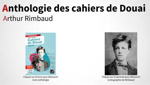 Les "Cahiers de Douai" d'Arthur Rimbaud forment un recueil de poèmes captivant. À travers ces pages, Rimbaud retrace son parcours mouvementé, explorant l'amour, la révolte, la guerre, la satire, la bohème, et la liberté. Chaque poème montre la passion et l’engagement de l’auteur, créant un recueil qui continue d’être lu de nos jours. J’ai personnellement apprécié lire ce recueil car cela a attisé ma curiosité étant donné que je n’ai pas l’habitude de lire ce genre de livres, ça a développé mon sens de la compréhension et cela m’a aussi apporté de la culture générale en plus. Cette anthologie vise à partager la richesse de ces poèmes et invite à retracer la vie du poète à travers ces derniers.
