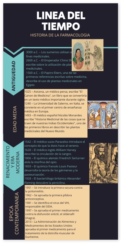 Línea del tiempo de la Farmacología: Desde la antigüedad hasta la era moderna. (2023, abril 14). Línea de Tiempo. https://lineadetiempo.net/linea-del-tiempo-de-la-farmacologia-desde-la-antiguedad-hasta-la-era-moderna/