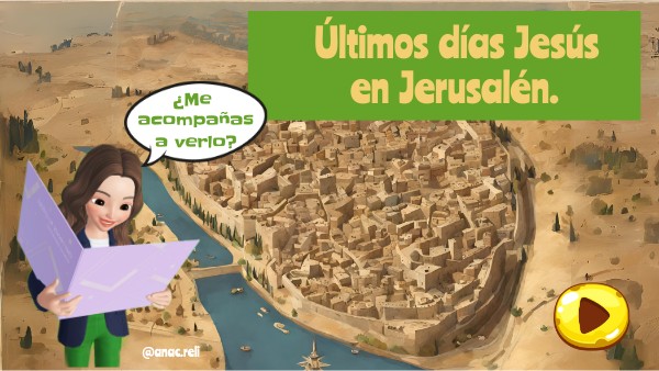 Para ello vais a ver un mapa de la ciudad de Jerusalén con los sitios dónde estuvo Jesús y qué pasó en cada uno de ellos.