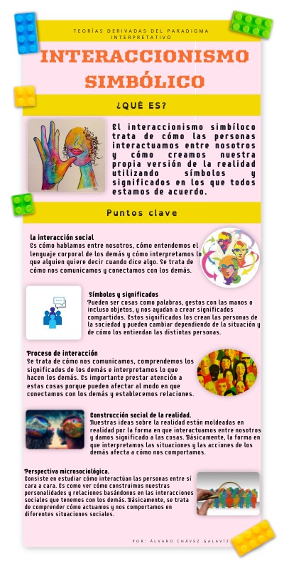 El interaccionismo simbíloco trata de cómo las personas interactuamos entre nosotros y cómo creamos nuestra propia versión de la realidad utilizando símbolos y significados en los que todos estamos de acuerdo.
