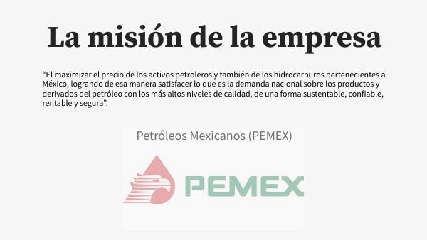 “El maximizar el precio de los activos petroleros y también de los hidrocarburos pertenecientes a México, logrando de esa manera satisfacer lo que es la demanda nacional sobre los productos y derivados del petróleo con los más altos niveles de calidad, de una forma sustentable, confiable, rentable y segura”.