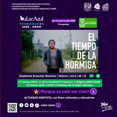 07.marzo.2024 | 11:00 h | Auditorio Francisco J. Múgica UAER-UNAM 15.marzo.2024 | 10:00 h | Instituto de la Mujer Sahuayo