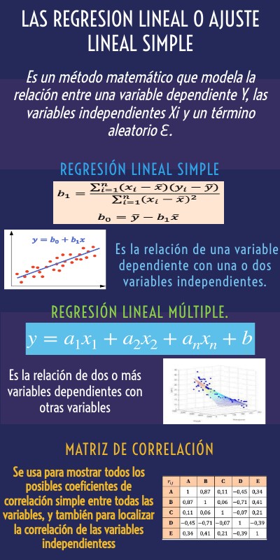 Es un método matemático que modela la relación entre una variable dependiente Y, las variables independientes Xi y un término aleatorio Ɛ.