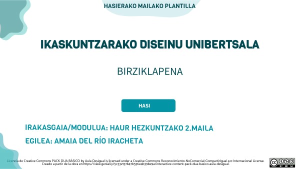 Licencia de Creative Commons PACK DUA BÁSICO by Aula Desigual is licensed under a Creative Commons Reconocimiento-NoComercial-CompartirIgual 4.0 Internacional License. Creado a partir de la obra en https://view.genial.ly/5c332137b47b536e4b39be9a/interactive-content-pack-dua-basico-aula-desigual.