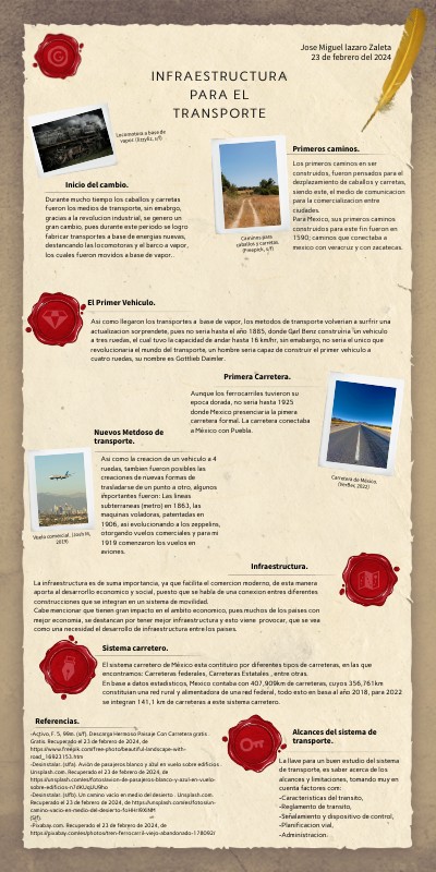 -Activo, F. 5, 99m. (s/f). Descarga Hermoso Paisaje Con Carretera gratis . Gratis. Recuperado el 23 de febrero de 2024, de https://www.freepik.com/free-photo/beautiful-landscape-with-road_16923153.htm -Desinstalar. (s/fa). Avión de pasajeros blanco y azul en vuelo sobre edificios . Unsplash.com. Recuperado el 23 de febrero de 2024, de https://unsplash.com/es/fotos/avion-de-pasajeros-blanco-y-azul-en-vuelo-sobre-edificios-n7dKUqUU9ho -Desinstalar. (s/fb). Un camino vacío en medio del desierto . Unsplash.com. Recuperado el 23 de febrero de 2024, de https://unsplash.com/es/fotos/un-camino-vacio-en-medio-del-desierto-foHHrI9XiNM (S/f). -Pixabay.com. Recuperado el 23 de febrero de 2024, de https://pixabay.com/es/photos/tren-ferrocarril-viejo-abandonado-178092/