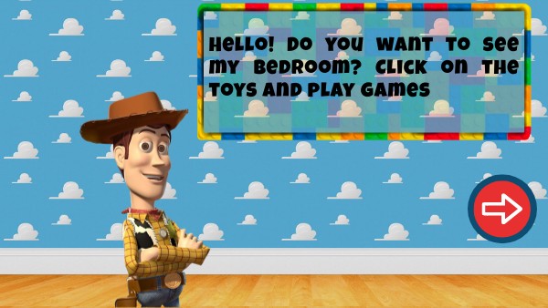 Hello! Do you want to see my bedroom? Click on the toys and play games