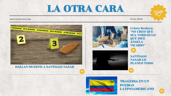 Estamos aquí en el lugar del crimen en un pueblo costero de Colombia donde asesinaron a Santiago Nasar, un chico respetado por la gente del pueblo, casi todos cuentan buenas cosas de él. Hoy a las 7 de la mañana llegó la noticia de su muerte.Hemos hablado con la señora Plácido Linero, la madre de Santiago Nasar le hemos preguntado de qué porque cerró la puerta y su respuesta fue: “yo creí que mi hijo estaba dentro de casa por eso cerré la puerta”. Nosotros pensamos que es difícil de creer que la madre de santiago nasar estaba en el balcón y no escuchase a su hijo mientras estaba gritando a lado de casa , y solo vio a los hermanos vicario y fue a cerrar la puerta cuando su hijo estaba fuera.