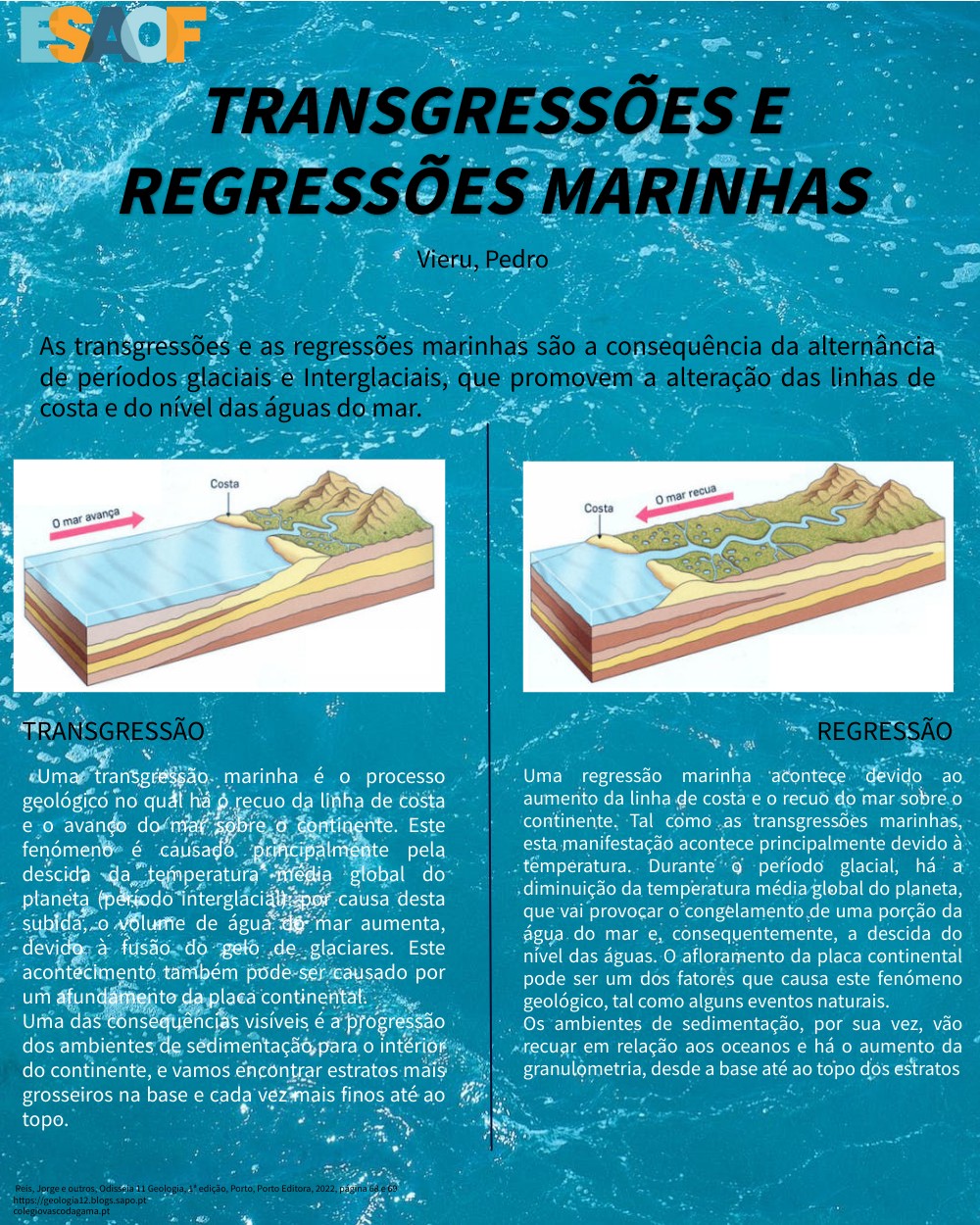 As transgressões e as regressões marinhas são a consequência da alternância de períodos glaciais e Interglaciais, que promovem a alteração das linhas de costa e do nível das águas do mar.