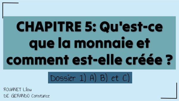 CHAPITRE 5: Qu'est-ce que la monnaie et comment est-elle créée ?