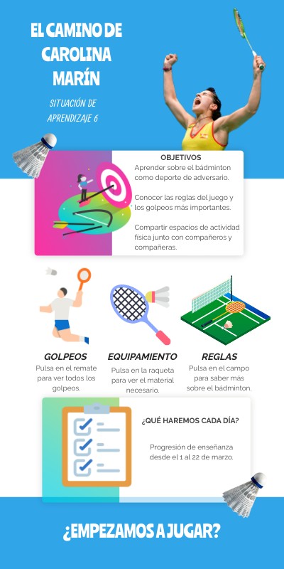 Aprender sobre el bádminton como deporte de adversario. Conocer las reglas del juego y los golpeos más importantes. Compartir espacios de actividad física junto con compañeros y compañeras.